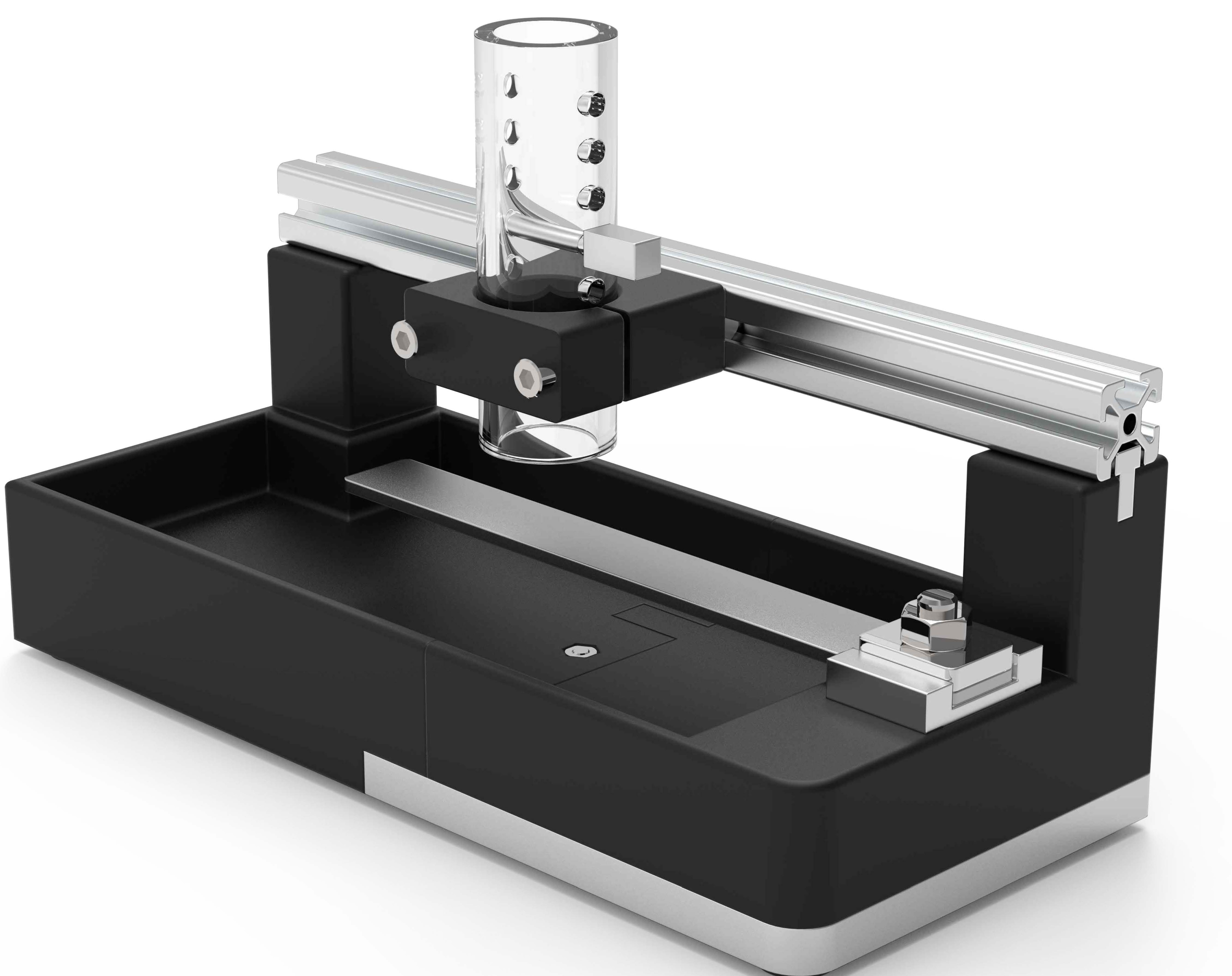 Test fixture consisting of a solenoid-impacted stainless steel beam used for testing shock-response sensors. See it in action